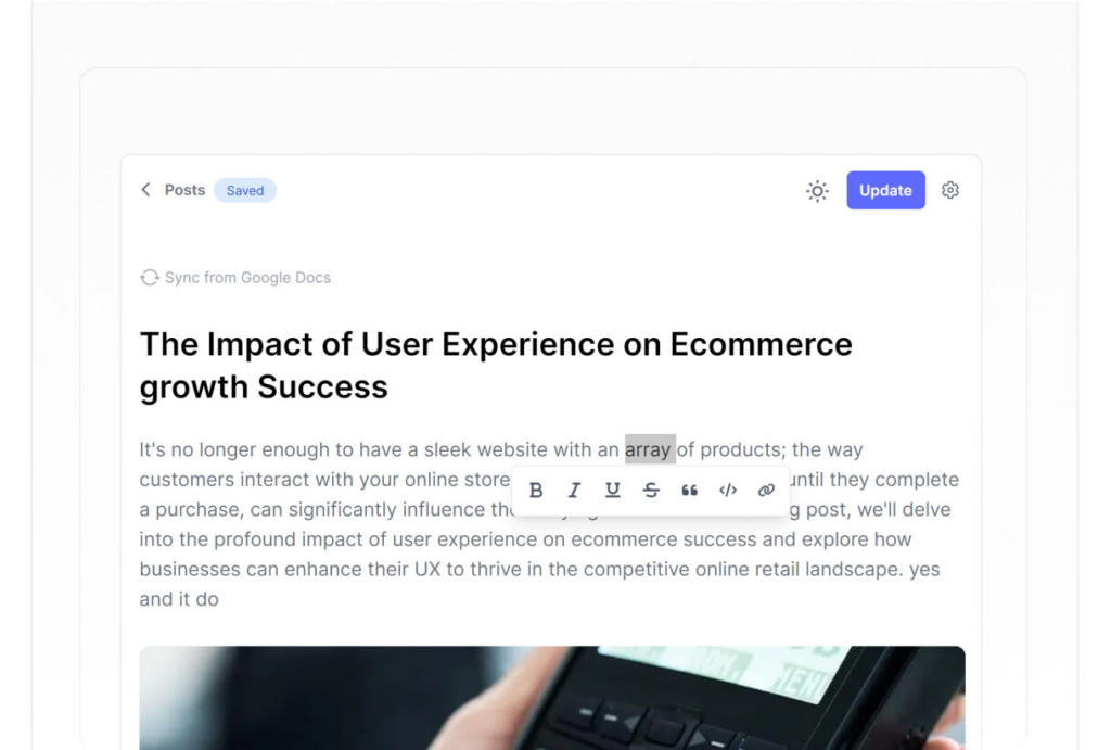Collaborate with your team on Google Docs and publish to Typeflo in just three clicks. Enjoy seamless content sync.