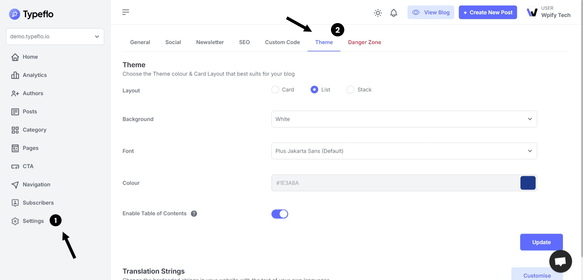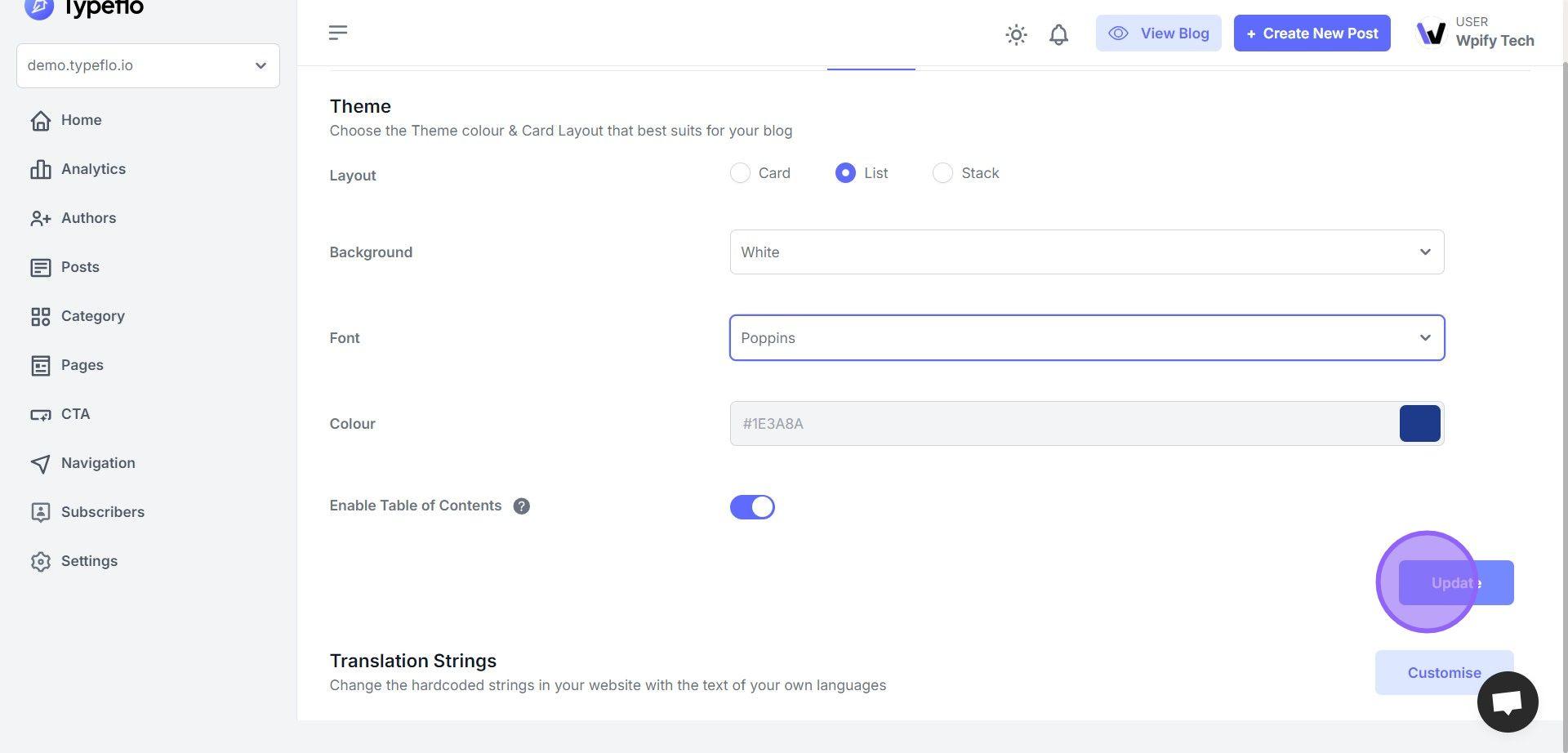 Click on Update to save your changes.
