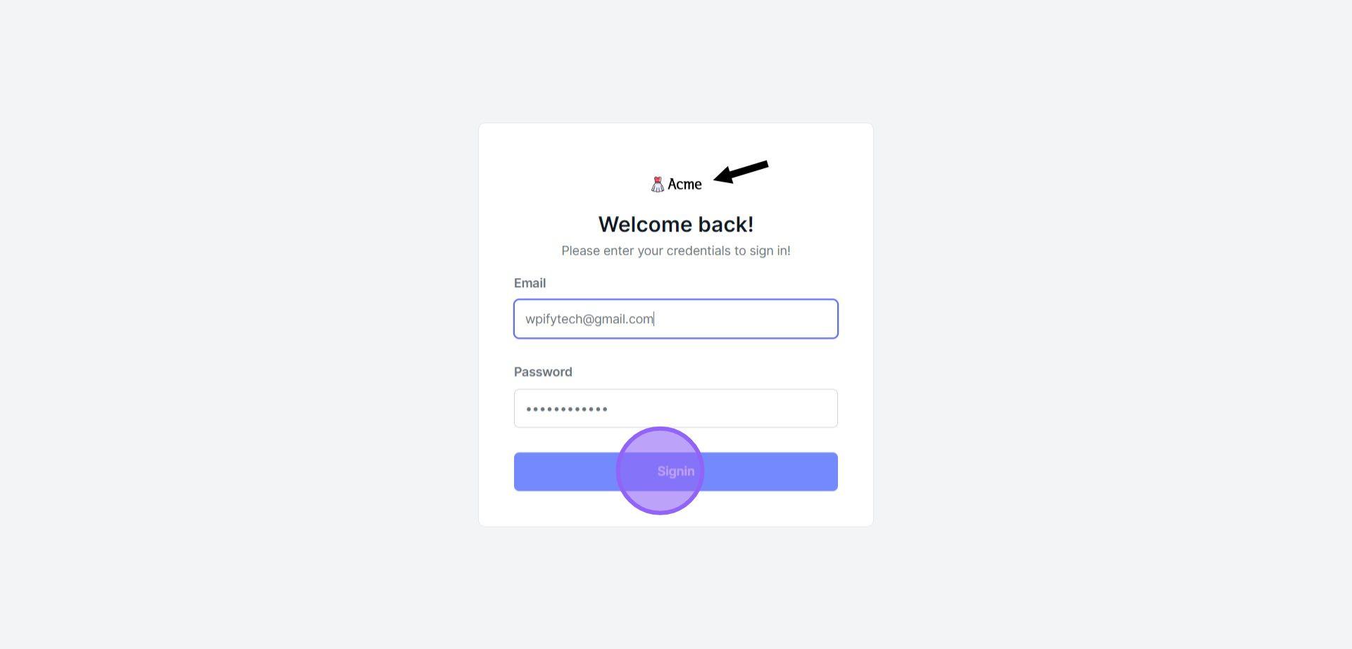 5. To check if everything is working, enter the URL of your white-labelled dashboard. You will see that the logo is the one you had earlier uploaded. Enter your email and the password you generated earlier and click on "Signin"