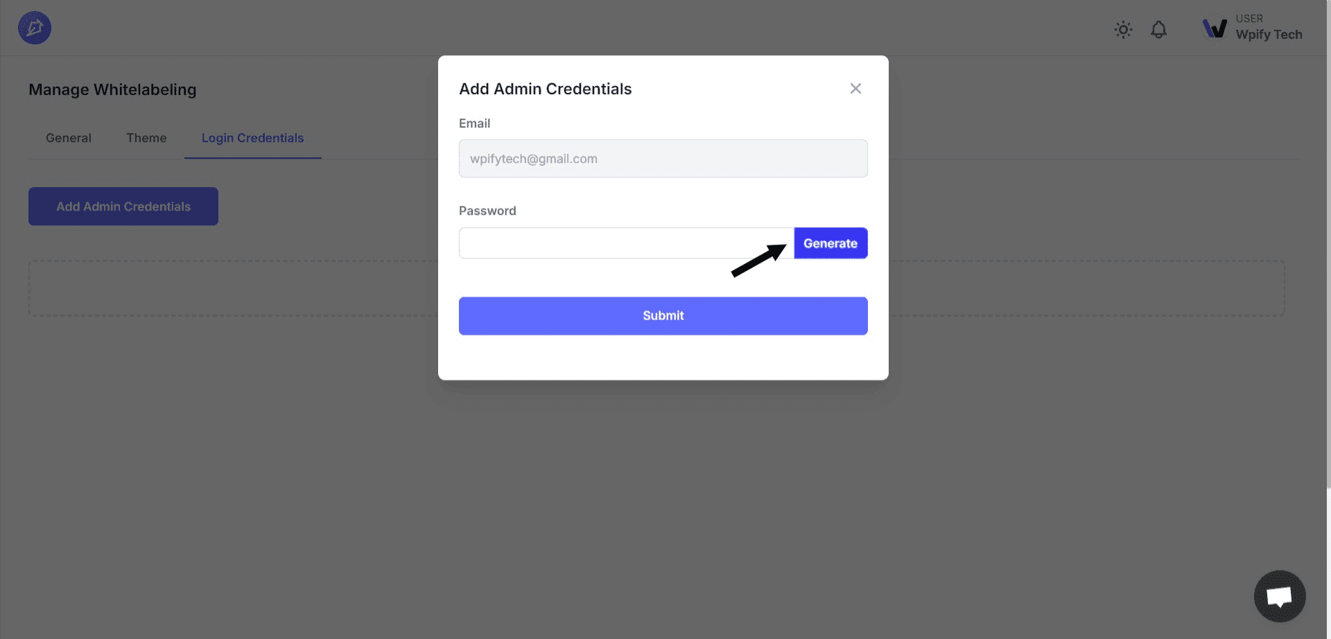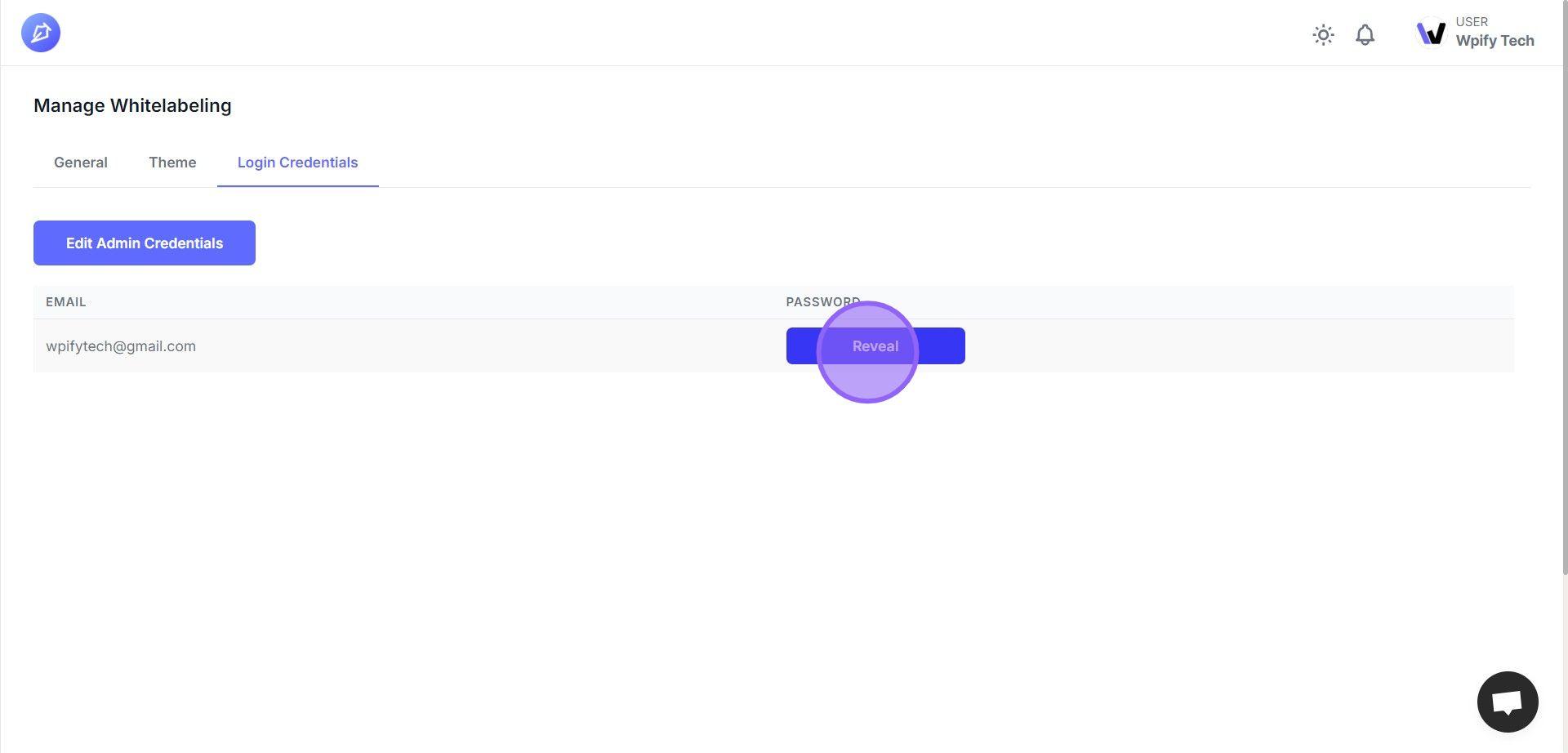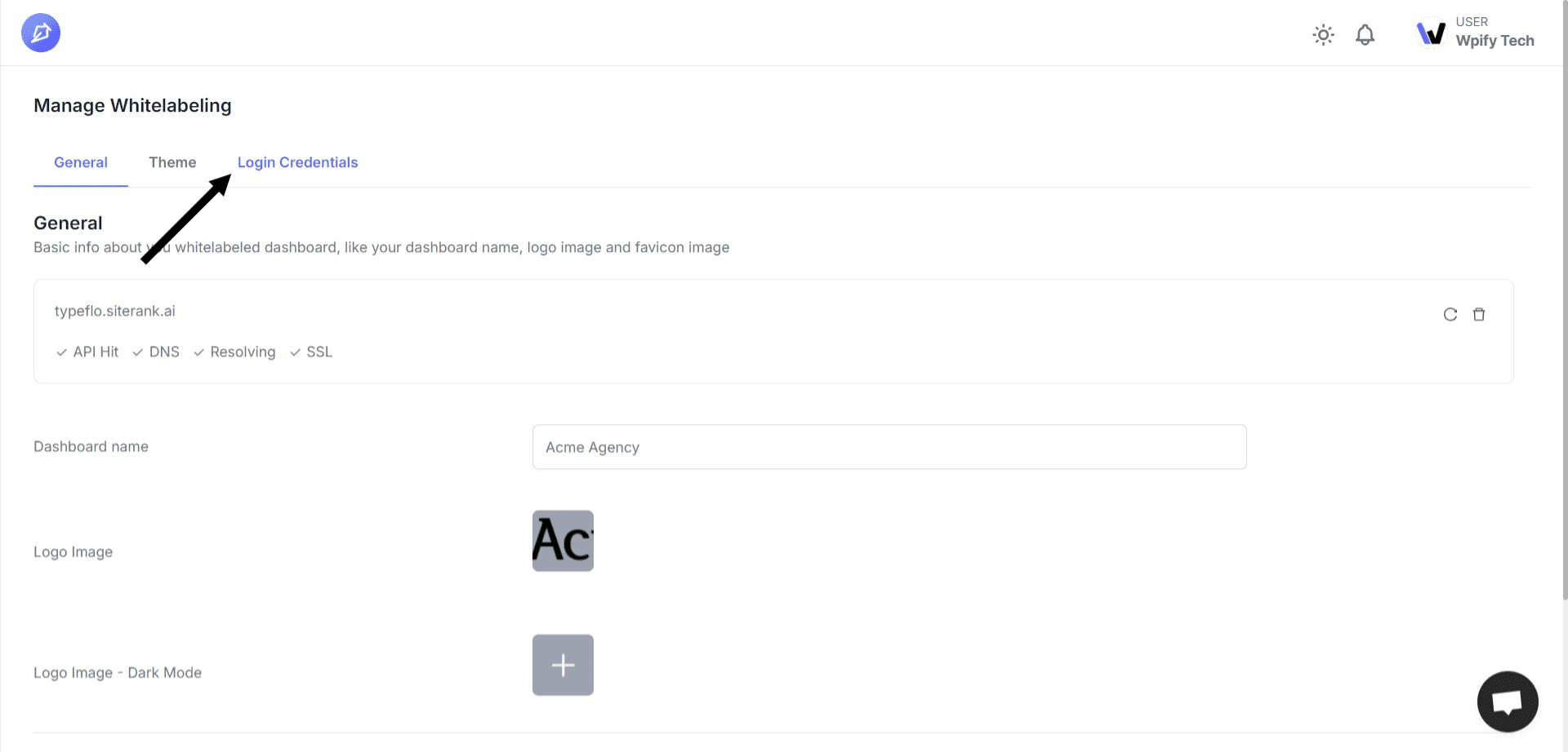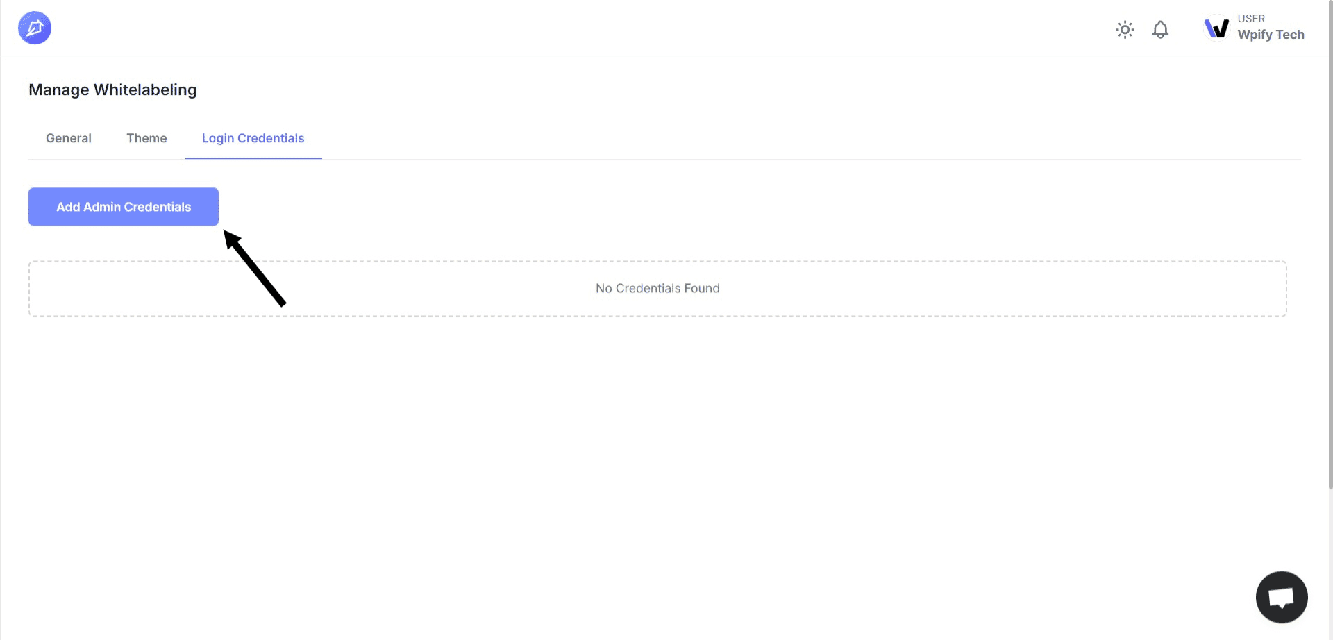 1. Once you are in "Manage Whitelabeling", Click on "Login Credentials"
