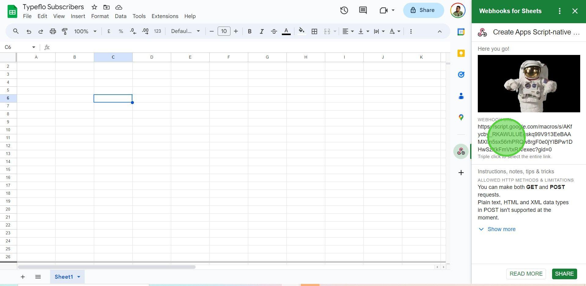 1. Copy the endpoint webhook URL (Where you want to send data)