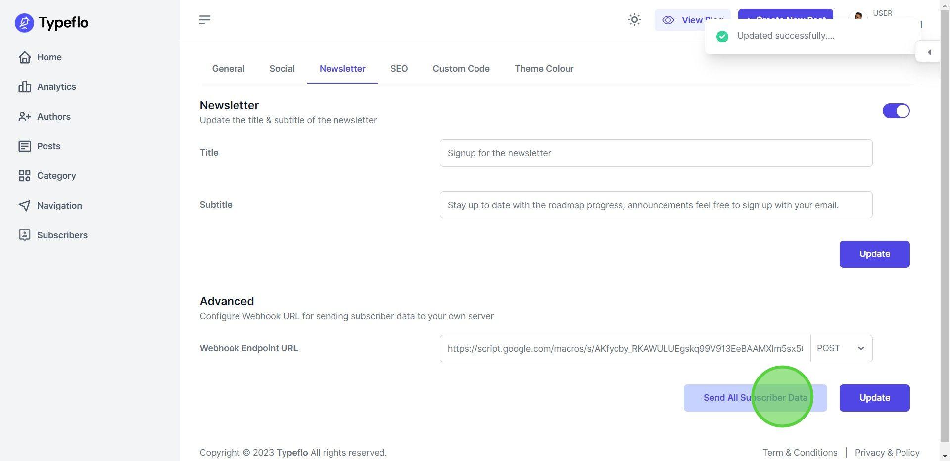 5. Once you receive the Updated Successfully message, Click on "Send All Subscriber Data"