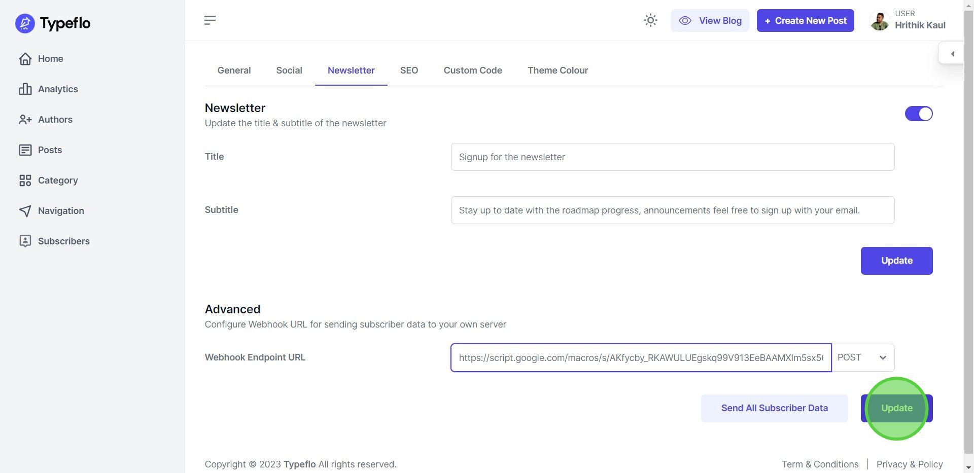 3. Paste the URL here (Navigate to Settings > Newsletter)